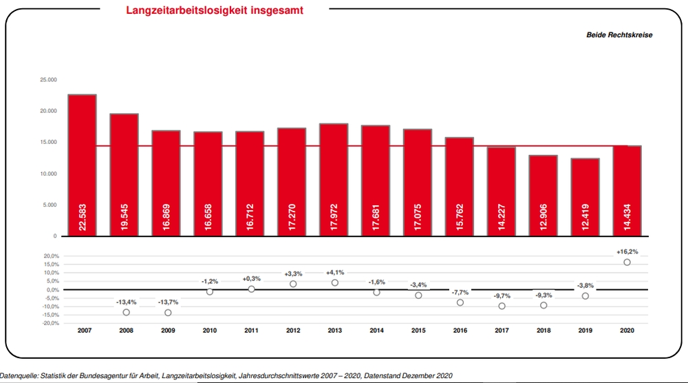 Arbeitslosigkeit insgesamt (+13,6 Prozent)