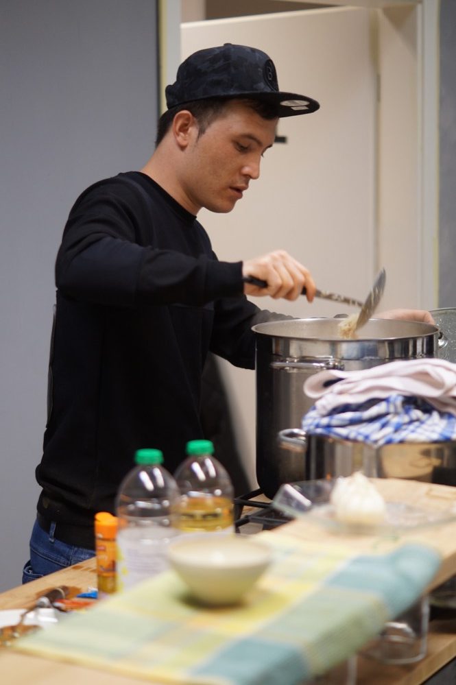 Der 21-jährige Amir ist seit drei Jahren Mitglied des transnationalen Ensembles. „Die Truppe hier ist sehr nett“, sagt er. Er ist durch Freunde auf das Projekt gestoßen, hilft beim „Family Food“ als Unterstützung aus. „Wenn wir hier etwas kochen, ist der Raum von vorne bis hinten gefüllt“, erzählt Amir später beim Essen.
