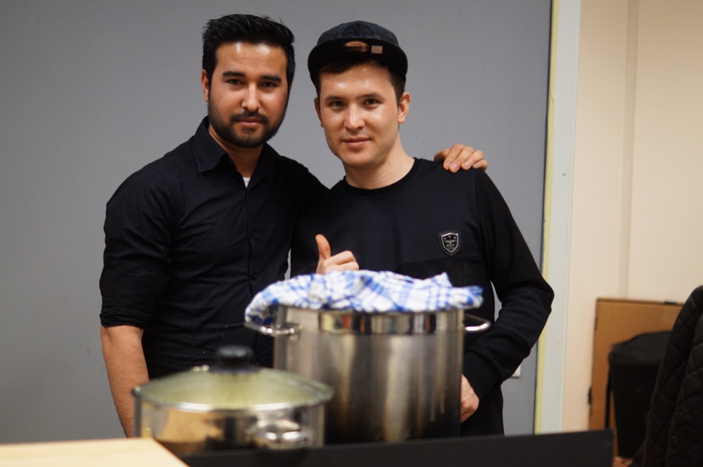 Schon gegen 18 Uhr ist der Kiosk des transnationalen Ensembles Labsa, in der Langen Straße 98, gefüllt. Es schwirren Menschen durcheinander und treffen bekannte Gesichter wieder. Gegenüber vom Eingang stehen Farhad Hussaini und Khodayar Mohammadi. Sie sind die Köche des Abends. Ihr Gericht: Qaboli Palaw, ein afghanisches Reisgericht mit Rosinen und Rind, sowie mit Reis und Hühnchen. Es soll um 19 Uhr aufgetischt werden. Seit drei Stunden stehen die beiden zusammen am Herd. Es gibt „Family Food For All“, eine Aktion, die vom Ensemble Labsa regelmäßig durchgeführt wird. Mitessen darf jeder, der Lust hat. Das Angebot ist kostenlos.