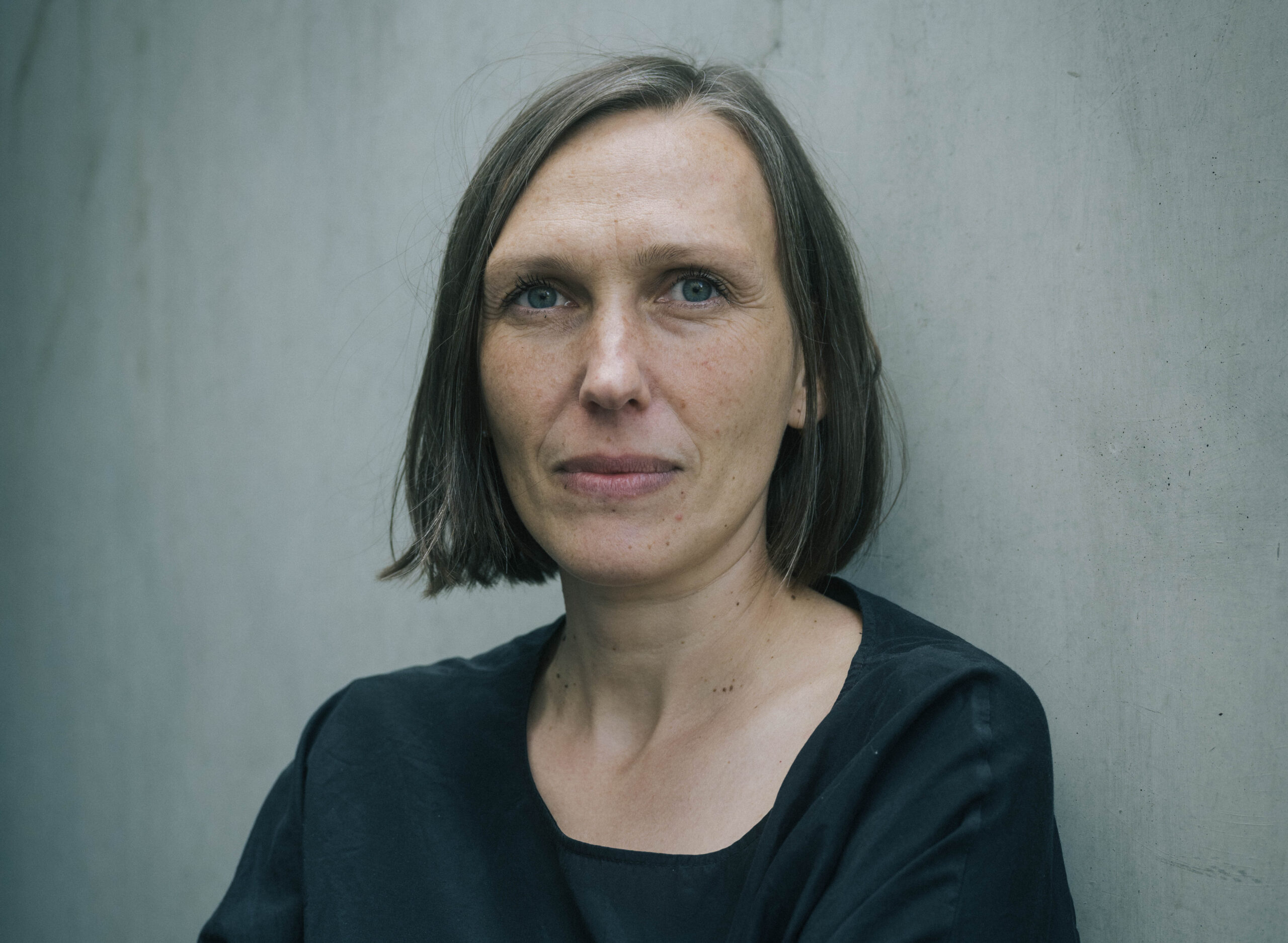 Foto der Regisseurin vor grauer Wand
