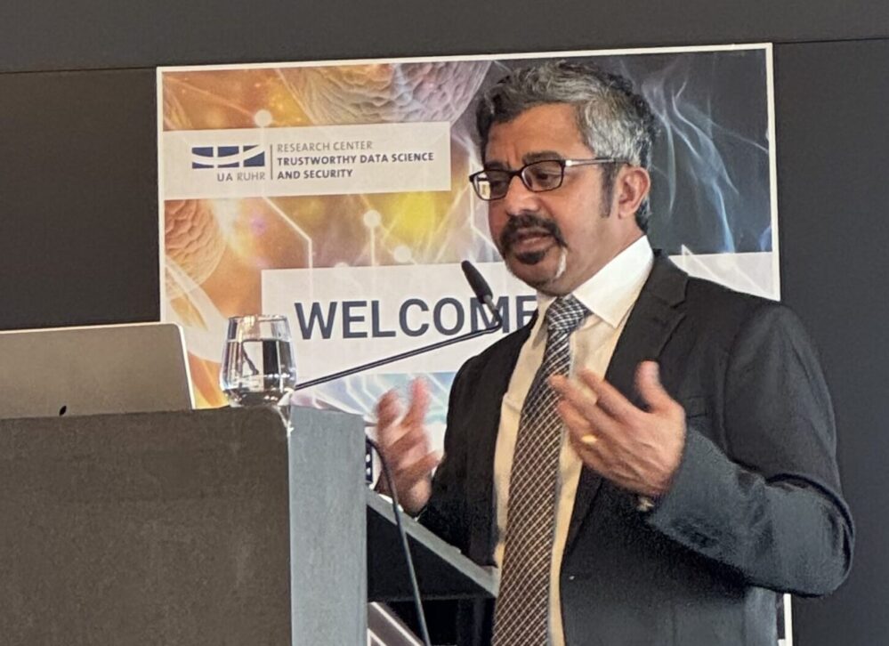 Professor Shyam Sundar von der Penn State University (USA) redete bei der Eröffnung über „From Trustworthy AI to Responsible AI: A Media Effects Approach“. In seinem Vortrag beleuchtete der Kommunikationswissenschaftler, dass KI-Systeme nicht nur vertrauenswürdig gestaltet, sondern auch verantwortungsvoll eingesetzt werden müssen.