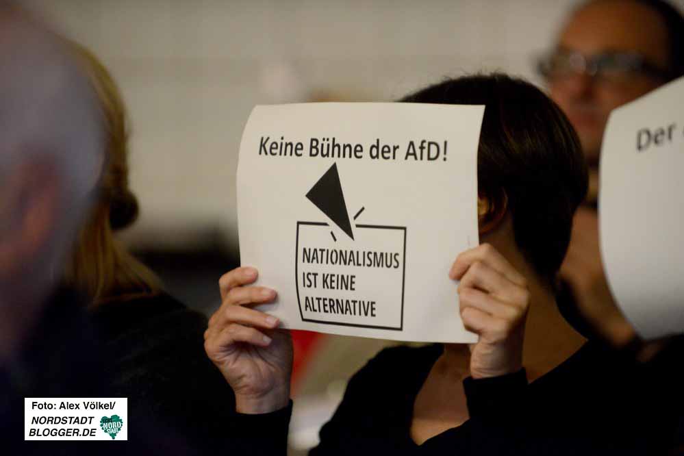 Nach der Pause die Beschlussfassung: Die Podiumsdiskussion wurde beendet, ein neuer Termin noch vor der Wahl zum selben Thema versprochen – ohne Mathias Helferich. Hätten Laker und Nähle nicht perfekt sein wollen, nicht als Lehrmeister der Nordstadt dastehen wollen, hätten sie die AfD gleich aus dem Kreis der RednerInnen gestrichen. Niemand hätte sie dafür schlechte Demokraten genannt.