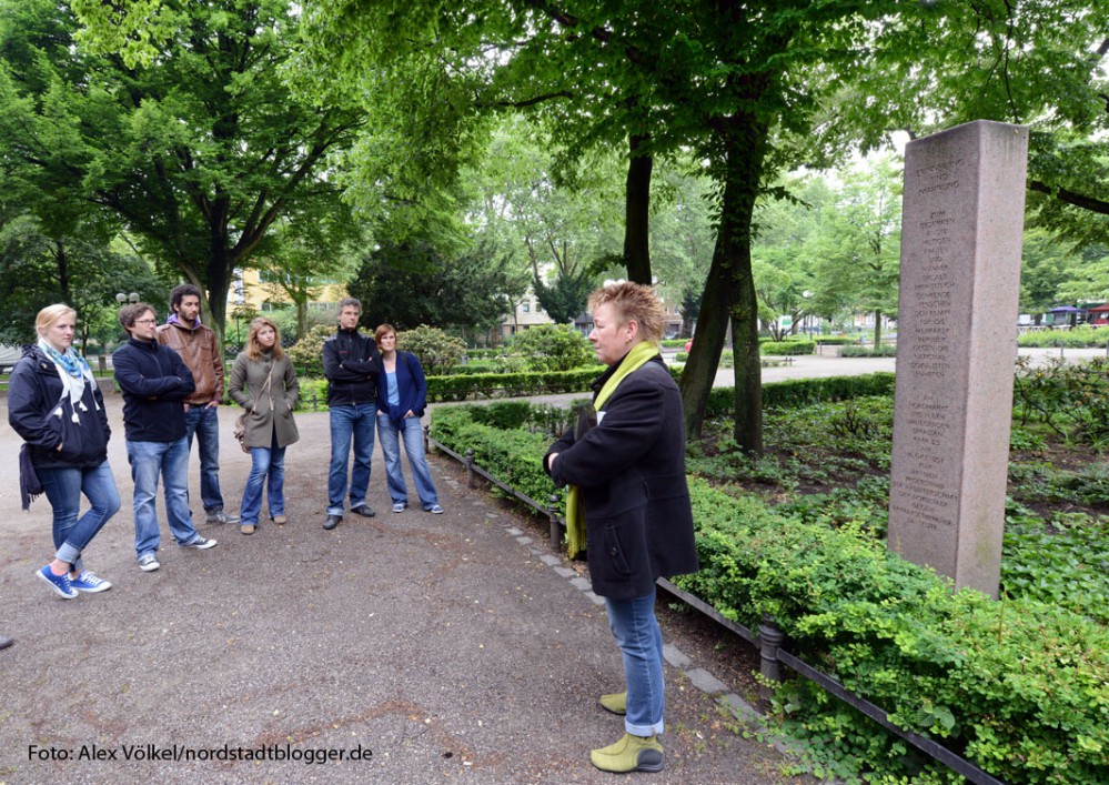 Was war damals geschehen? Am 16. Oktober 1932 zieht eine ca. 800köpfige SA-Formation unter Polizeischutz in einem Propagandamarsch zum Nordmarkt. Die braunen Uniformträger fordern damit die in der Nordstadt stark vertretene kommunistische Organisation „Kampfbund gegen den Faschismus“ und das sozialdemokratische „Reichsbanner“ heraus.