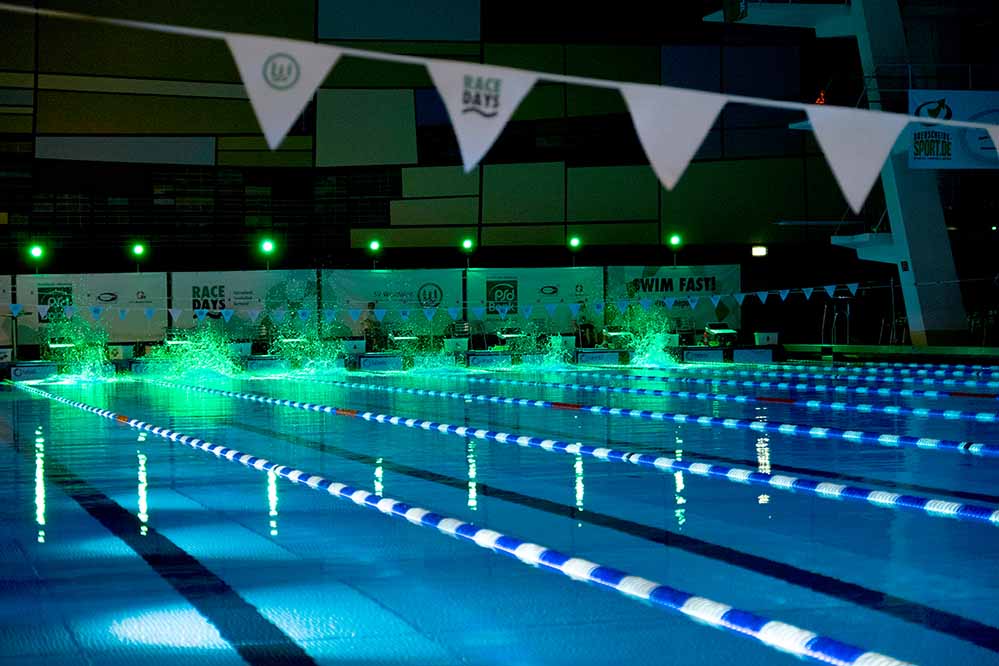 Wenn im Dortmunder Südbad das Licht ausgeht, rockige Sounds aufdrehen und bunte Spots hinter den Startblöcken die Schwimmerinnen und Schwimmer ins Rampenlicht rücken, dann erwartet die Zuschauer wieder ein atemraubendes Rennen. Der SV Westfalen Dortmund präsentiert am 4. und 5. März zum zweiten Mal die Swim Race Days und bietet für Besucher mehrere Zuschauererlebnisse.