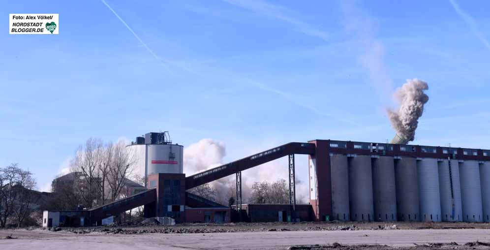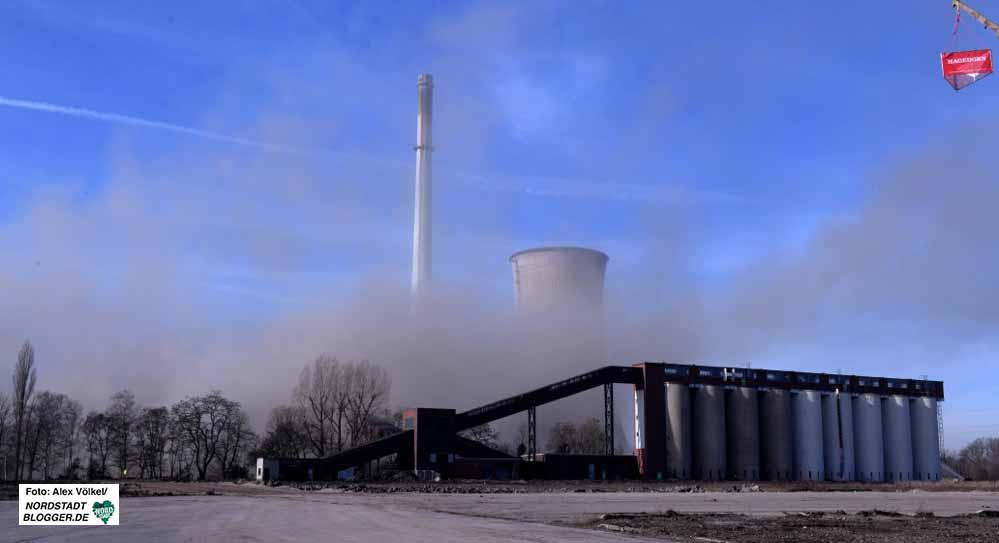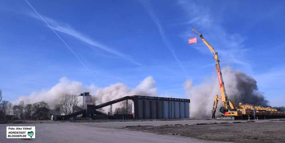 Seit einem Jahr laufen die Rückbauarbeiten. In der Spitze sind 100 Beschäftigte auf der Baustelle aktiv. Allein für den Rückbau der gesprengten Objekte sind drei Monate angesetzt. Dazu werden gut 30 Großgeräte und ungefähr 60 Mann im Einsatz sein. Das mineralische Abrissmaterial, welches den Großteil ausmacht, verbleibt direkt auf dem Gelände und wird für die Nachnutzung verwendet. Die übrigen Materialien werden der Prozesskette wieder zugeführt.