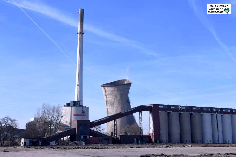 Der Kühlturm wurde mit rund 150 Kilo Sprengstoff, verteilt auf gut 600 Bohrlöcher, zu Fall gebracht und landete bereits nach drei Sekunden am Boden. Hier kommen mit beiden Gebäuden gut 19.000 Tonnen Stahlschott und Bauschutt zusammen. Die Menge des eingesetzten Sprengstsoffs sei dabei nicht sonderlich spektakulär. „In Steinbrüchen wird mehr Sprengstoff verwendet“, macht Sprengmeister André Schewcow deutlich.