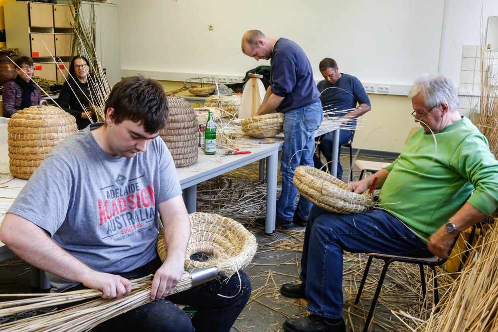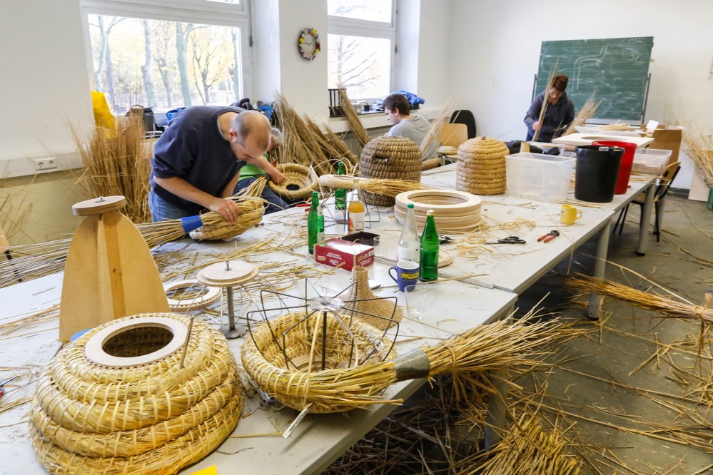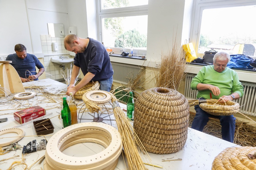 Auch wenn die an diesem Wochenende handarbeitenden ImkerInnen nicht komplett auf Bienenkörbe umsteigen wollen, sind sie doch sehr daran interessiert, es den Tieren so nett wie möglich machen.