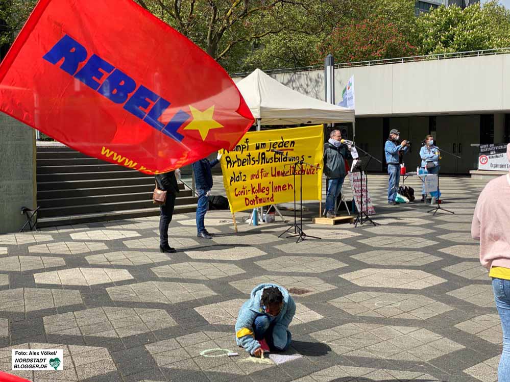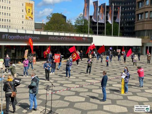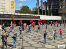 Sie forderten bessere Arbeitsbedingungen, mehr Gesundheits- und Umweltschutz, eine Gesellschaft ohne Krieg und Vertreibung sowie den Schutz von Geflüchteten. Gewerkschafter machten deutlich, wie Firmen, auch in Dortmund, die vorher schon bestehenden Probleme unter dem Deckmäntelchen von Corona nun durch den Staat lösen lassen wollten – und dass die Belastungen durch die Krise vor allem von den Beschäftigten zu tragen seien.