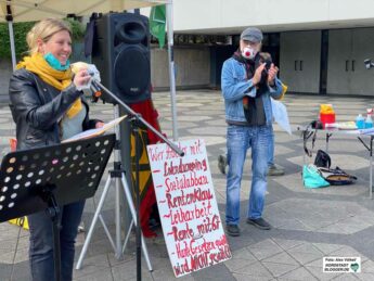 Gegen die Aushebelung von Grundrechten wurde ebenfalls das Wort erhoben. Kritik gab es daran, dass der DGB-Bundesvorstand alle Aktivitäten abgesagt habe. „Viele Gewerkschaftsmitglieder halten das für falsch – man kann sehr wohl auf die Straße gehen und alle Maßnahmen zum Gesundheitsschutz einhalten“, sagte Anmelder Gerd Pfisterer.