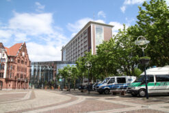 Rund um den Friedensplatz kam es am Ende des Tages zu kleineren Konflikten. Foto: Karsten Wickern.
