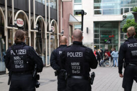 Polizei und Ordnungsamt hielten hier das Geschehen nur im Blick. Foto: Alex Völkel