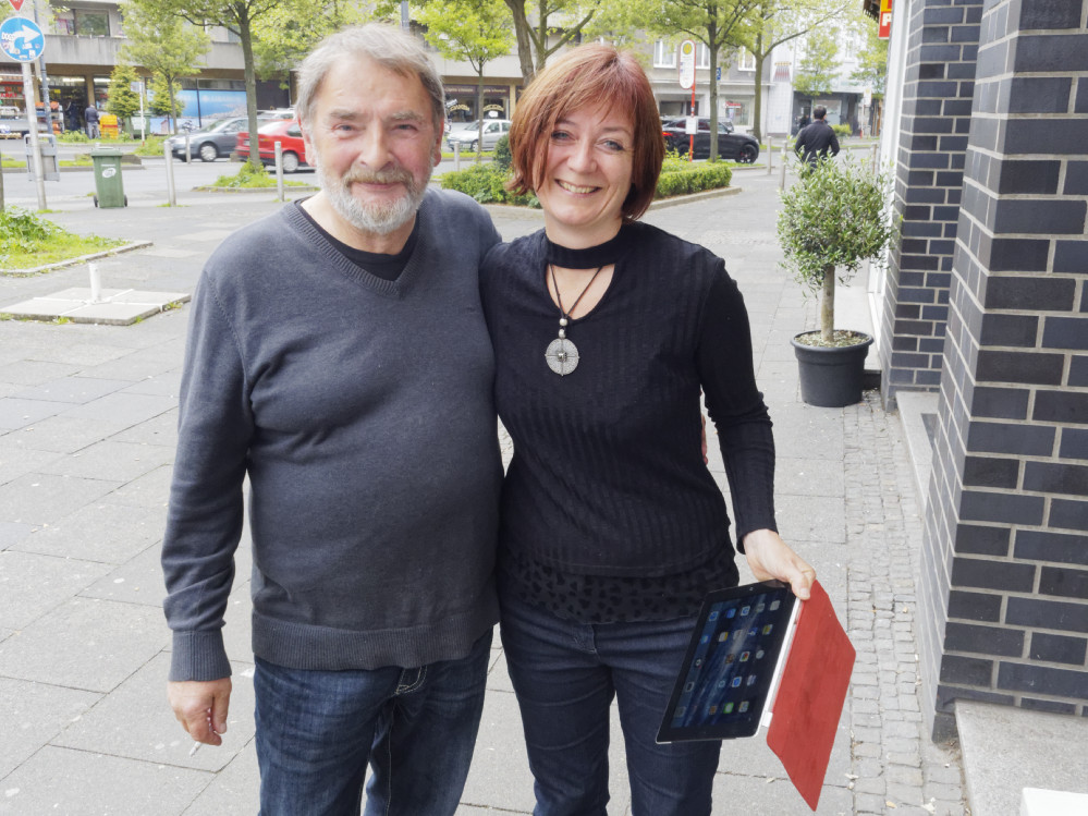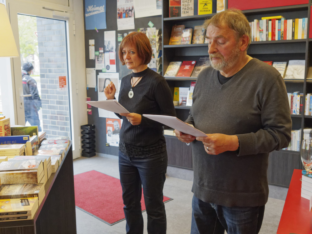 Ehrengäste am Freitagnachmittag an der Münsterstraße 107 waren Reinhard Junge und Christiane Bogenstahl, die aus ihrem Krimi „Datengrab“ vorlasen, dem neuen Fall, den das Fernsehteam Pegasus löst.