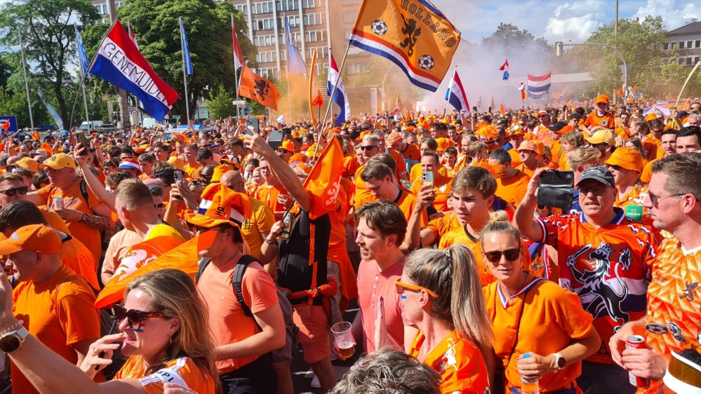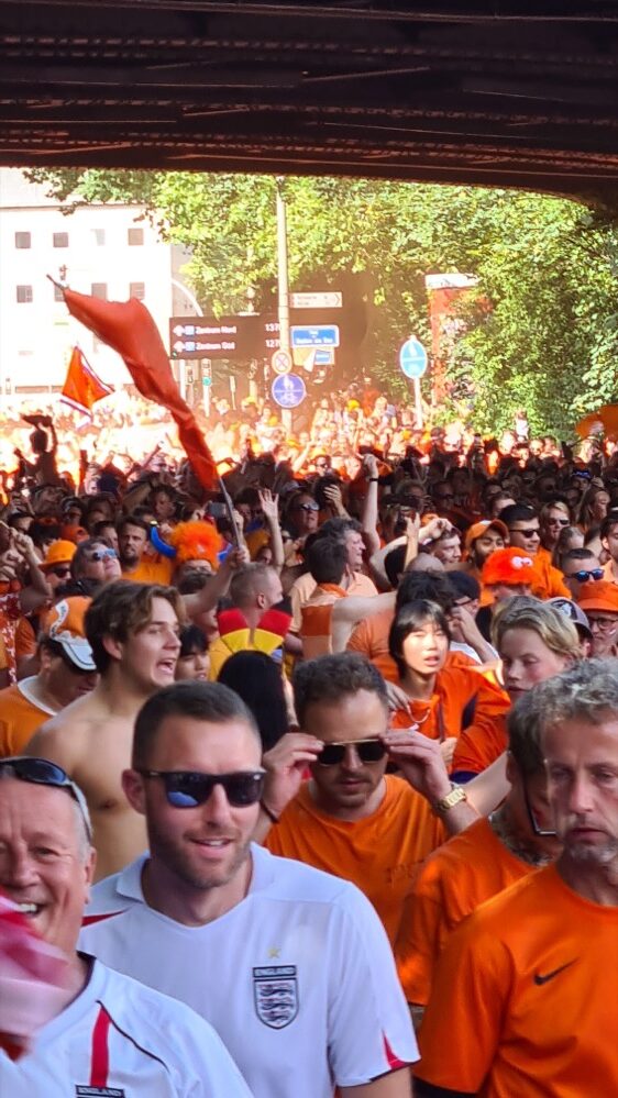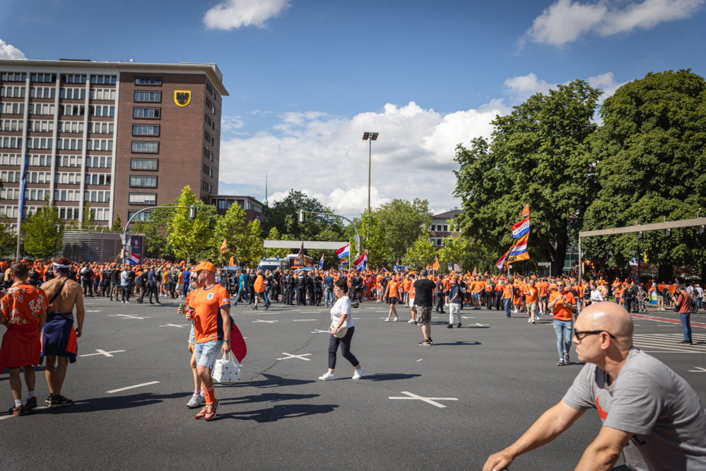 Für einen Tag taucht Dortmund in die Farbe Orange. Rund 80.000 niederländische Fans sind für das Halbfinal-Spiel zwischen der Niederlande und England nach Dortmund gekommen. Überall in der Stadt findet man Fans aus Holland, die sich jetzt gut gelaunt auf dem Weg zum Stadion bzw. zum Public Viewing im Westfalenpark machen.