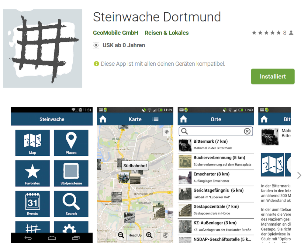Im Rahmen solcher Bildungsarbeit der Steinwache gibt es übrigens seit längerem eine App (für Android und IOS). Mit ihrer Hilfe können historische Orte in Dortmund erkundet werden, die in einem Zusammenhang mit den nationalsozialistischen Verbrechen stehen. Etwa zum heute kaum noch bekannten Südbahnhof, der ab Ende April 1942 Sammelpunkt und Drehscheibe für Transporte in die Vernichtungslager im Osten war.