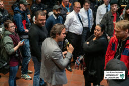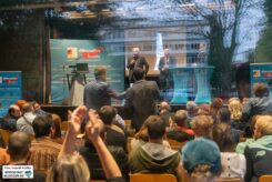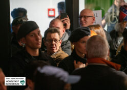 Gegen Ende des AfD-Auftritts kam es noch einmal zu einer kleinen Rangelei, als AntifaschistInnen in dem Saal ein Transparent entrollten und Parolen skandierten. Insgesamt blieb es aber friedlicher, als insbesondere wegen der Neonazi-Präsenz zu befürchten war.
