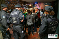 Kleinere Rangeleien im Eingangsbereich und während der sog. Dialog-Veranstaltung