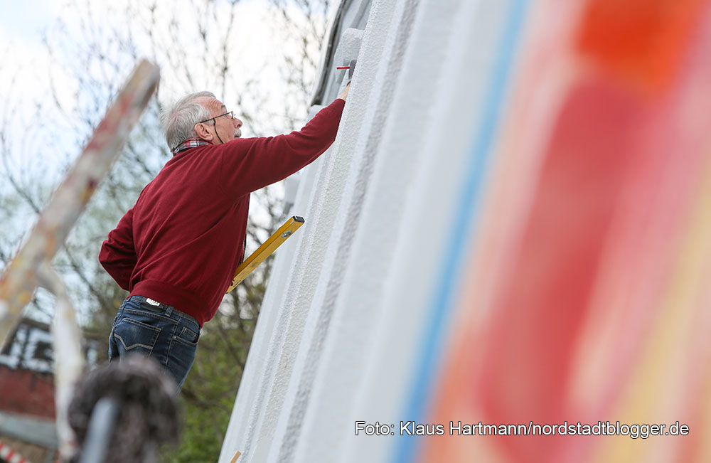 Alle bringen ihre eigenen Farben und ihr Werkzeug mit. Dafür bekommen sie eine Aufwandsentschädigung von 150 Euro. Die Kosten für das ganze Projekt belaufen sich auf 26.500 Euro.