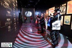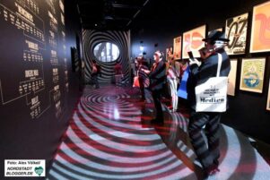 Dort betörten die Musiker von damals mit Tech-Sound die Welt, jetzt, indem Reliquien im Hightech-Modus ausgestellt werden. Letzteres geschieht durch mediale Einbindung der (zumeist) Originalexponate, mit denen die Band einst ihre Schallkompositionen rausgehauen hatte, zum Video- und Tonerlebnis der BesucherInnen, die sie bewundern – in einer nahezu alle Sinne miteinander ansprechenden Ausstellungswelt.