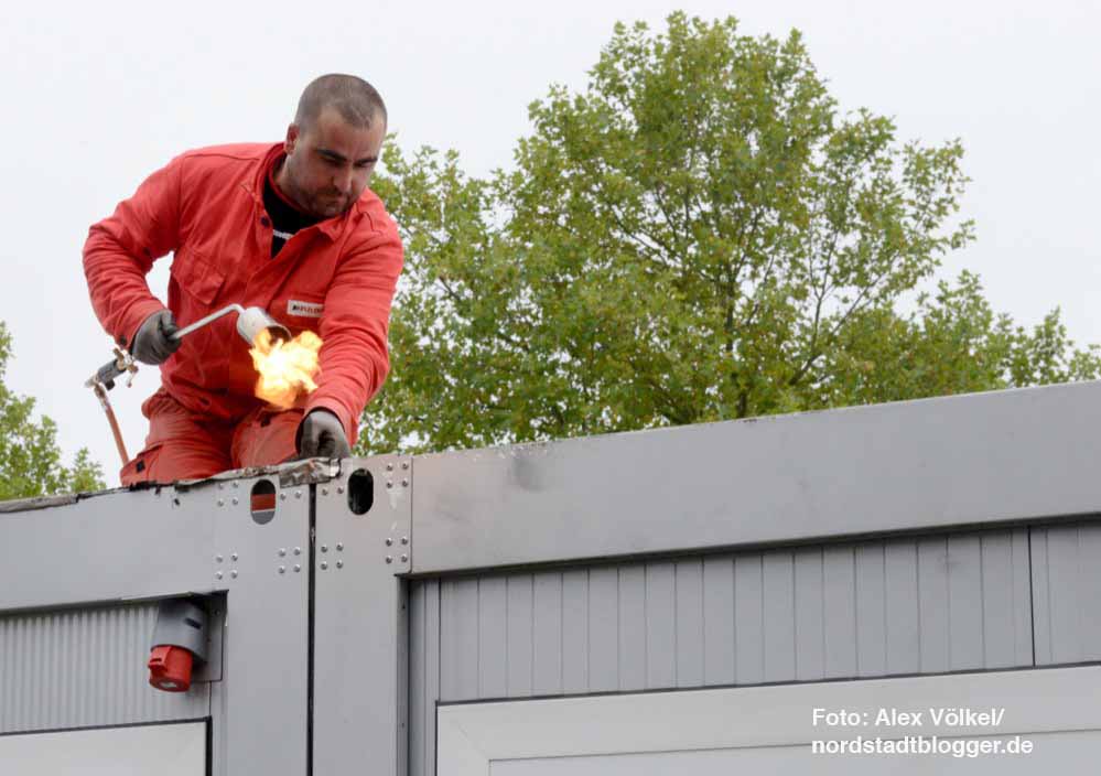 In den vergangenen fünf Wochen ist ‚An der Buschmühle 5’ eine Anlage entstanden, die im Endausbauzustand über 900 Schlafplätze und 100 Notplätze verfügen wird.