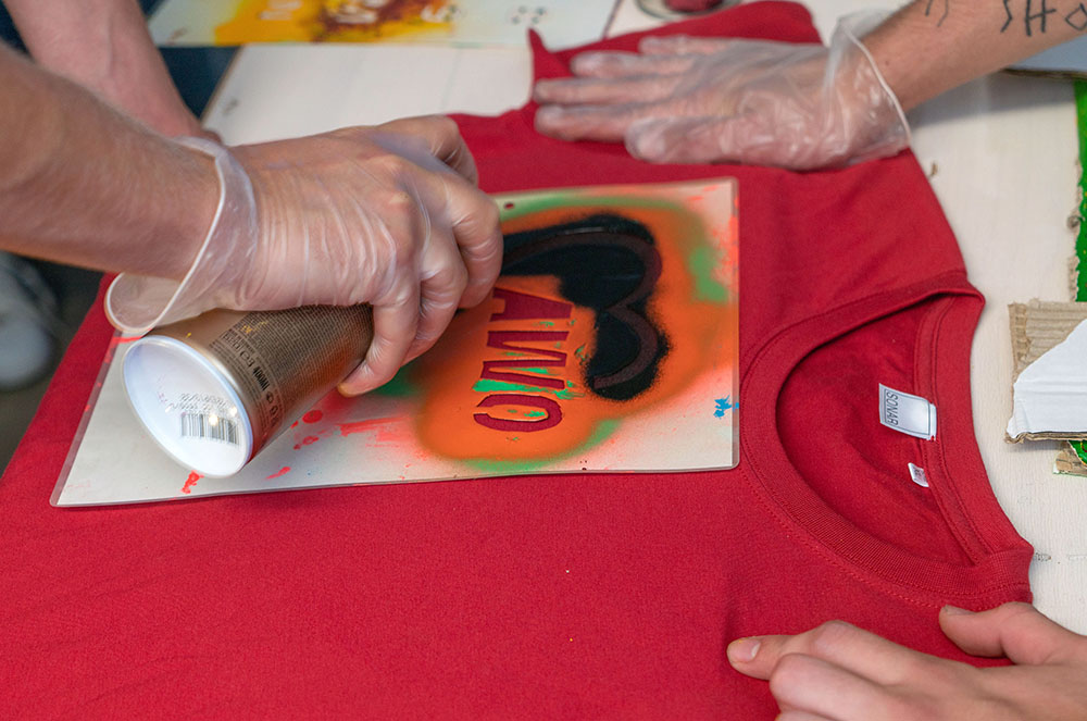 Sommerfest der AWO Assistenzagentur an der Leuthardstraße am 12.August 2022. In der Tiefgarage wurden T-Shirts mit AWO-Motiven gestaltet