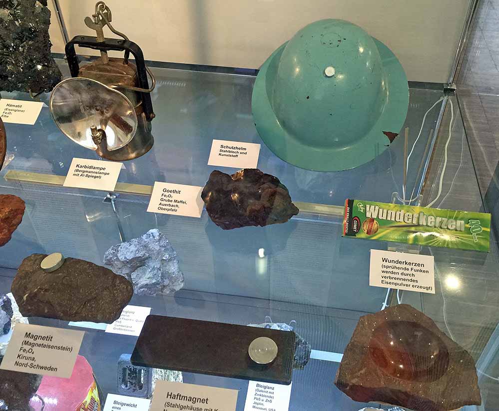„Insgesamt 41 Metalle erzählen ihren Lebenslauf“, sagt Homann, „72 bekannte Metalle gibt es“. Verzichtet wurde in der Ausstellung auf gefährliche Metalle, die zum Beispiel Uran enthalten, giftig sind oder ganz wertvolle Metalle, dies nicht zuletzt aus Versicherungsgründen.