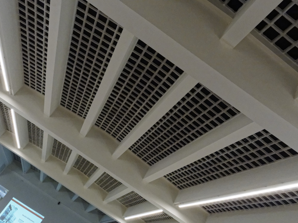 Zudem gehörten umfangreiche Betonsanierungen zum Auftragsumfang. Neben einer brandschutztechnischen Ertüchtigung der Betonteile installierte man auch eine flächendeckende Brandmeldeanlage. Darüber hinaus erfolgte eine Erneuerung der Wärmeversorgunganlagen sowie der raumlufttechnischen Anlagen.