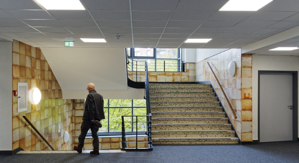 Diese Sanierungs- und Umbaumaßnahmen hatten es dabei in sich. Zwar steht das Gebäude nicht unter Denkmalschutz, gleichwohl ist es von der Unteren Denkmalbehörde als erhaltenswert eingestuft. Das Gebäude ist jetzt, nach Abschluss der Maßnahmen, von Schadstoffen befreit sowie im Inneren kernsaniert. Anschließend fand der Rückbau von Rohrleitungen, Verkabelungen, Heizkörper, Decken und Bodenbelägen statt.