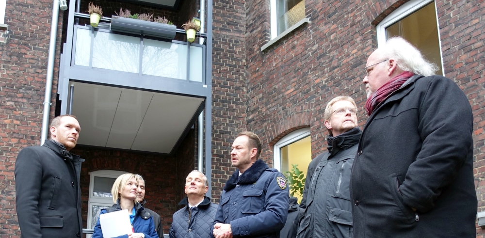 Dennoch, es hätte – zumindest hypothetisch – eine Alternative für den Spar- und Bauverein gegeben, wie Franz-Bernd Große-Wilde bei der offiziellen Begehung des neuen Schmuckstücks mit Blick auf die beiden modernisierten Häuserzeilen in der Albrechtstraße andeutet. Und das wäre vermutlich eine schleichende Gentrifizierung des Viertels gewesen.