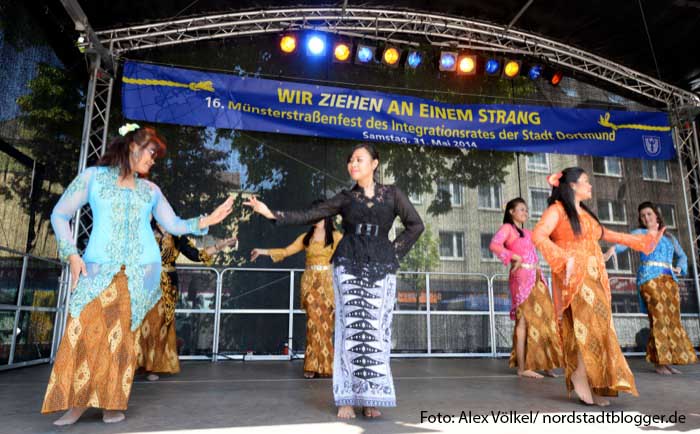Noch bis zum 8. Juni feiert Dortmund stolz die internationale Vielfalt in der Stadt. Start- und gleichzeitig auch ein Höhepunkt bildet dabei das traditionelle Münsterstraßenfest. „Wir ziehen an einem Strang“ war das Motto der Veranstaltung. Sie wird vom Integrationsrat der Stadt ausgerichtet – 55 multikulturelle Vereine, Organisationen und Gruppen nahmen daran teil und präsentierten sich den zahlreichen Gästen.