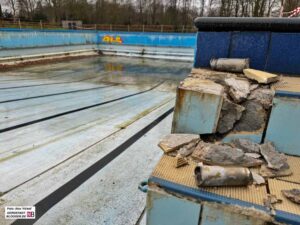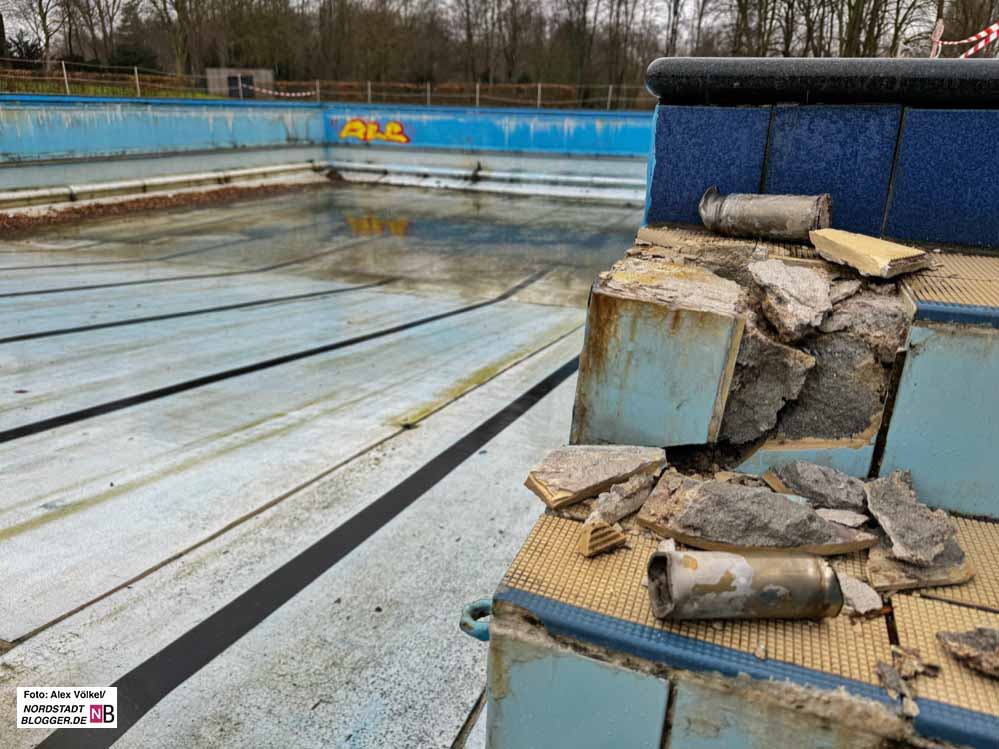Blick auf die Baustelle im Freibad Stockheide im Februar 2024. (Archivbilder) Foto: Alex Völkel für Nordstadtblogger.de