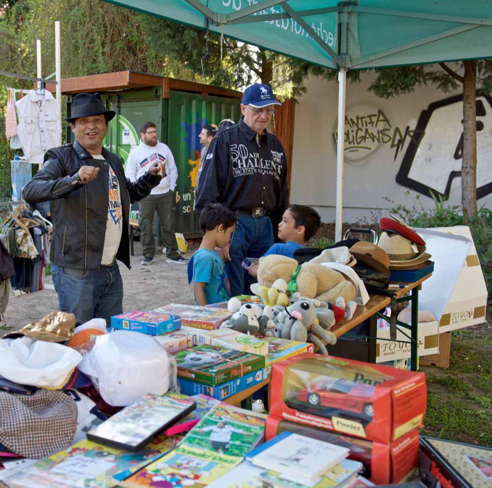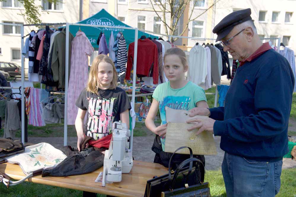 Viele Bewohnerinnen und Bewohner des Schleswiger Viertels nutzten das Angebot und beteiligten sich aktiv am Nachbarschaftsflohmarkt auf dem Spielplatz Düppelstraße.