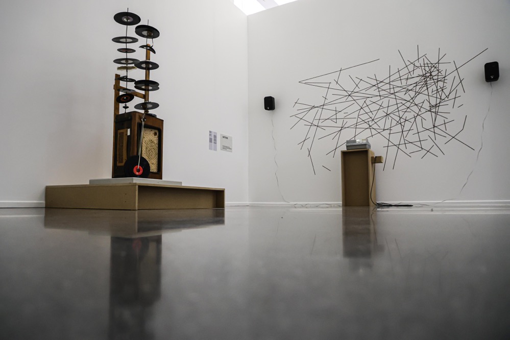 Musik auszustellen, sprich Klang in Form von unterschiedlichsten Kulissen zu inszenieren, ist eine Seite des in Deutschland lange Zeit umtriebigen Künstlers, die bisher entweder so noch nie oder so schon lange nicht mehr gezeigt wurde. Grund dafür liegt in einem der Höhepunkte der Ausstellung.