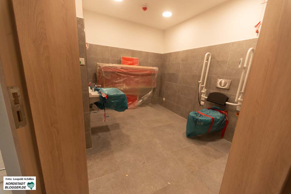 Ganz neu ist ein barrierefreier Eingang. Die frühere Treppe und der lange Gang gehören der Vergangenheit an. Demnächst führt der Weg sofort in die Servicebereiche: Links ist die Kasse, rechts wird es ein Café geben; außerdem die sanitären Anlagen mit WC für Behinderte und einen neuen Aufzug in die tiefer bzw. höher gelegenen Bereiche.
