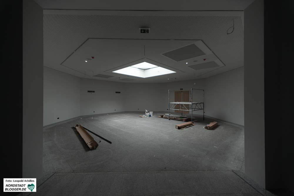 Große versteinerte Baumscheiben haben bereits ihren Platz an einer Wand gefunden, gegenüber ist viel Platz für einen hohen vertikalen Garten. Museumsdirektorin Möllmann: „Darauf freue ich mich ganz besonders“. Außerdem gibt es viel Platz für Sonderveranstaltungen oder Vorträge.