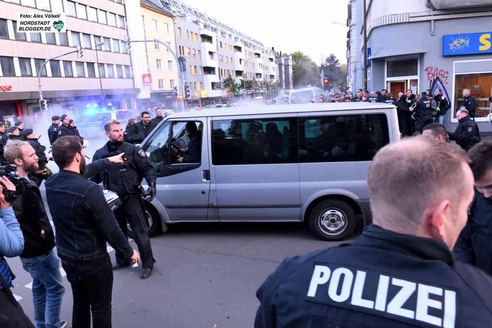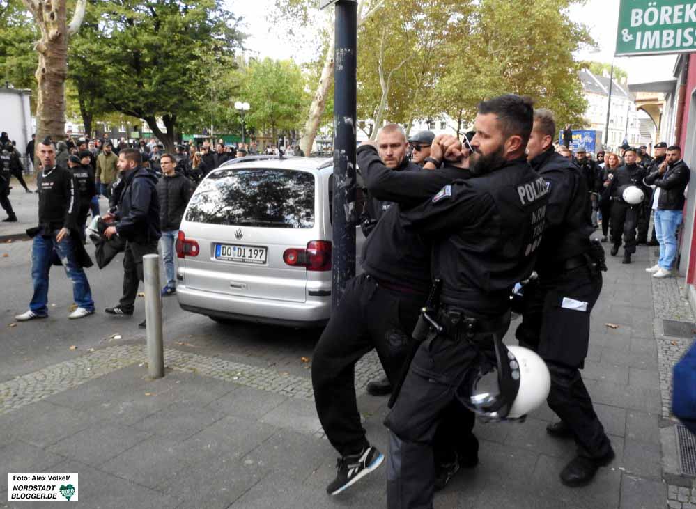 Ein überraschendes Ende – vor allem für die Neonazis – nahm das Demonstrationsgeschehen in der Nordstadt und westlichen Innenstadt am Tag der Deutschen Einheit: Statt zurück nach Dorstfeld, ging es für führende Aktive – darunter auch Michael Brück – mit dem Gefangenentransporter ins Gewahrsam Richtung Polizeipräsidium.