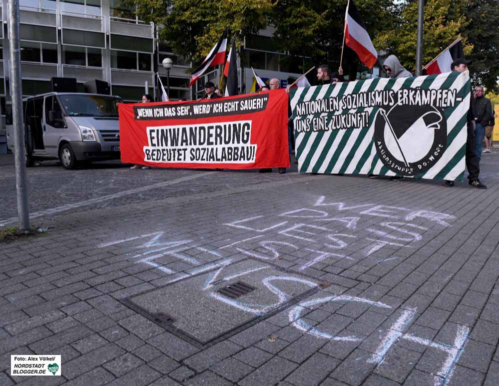 Rund 60 Neonazis hatten sich zuvor am Mittwochmittag (3. Oktober 2018) auf dem Nordmarkt versammelt. Ein harter Kern von etwa 20 hatte um ihren Lautsprecherwagen herum bereits 1,5 Stunden vor Veranstaltungsbeginn den Ort der Kundgebung in der Nordstadt „in Besitz genommen“, um möglichen Blockaden der Antifa zuvor zu kommen.
