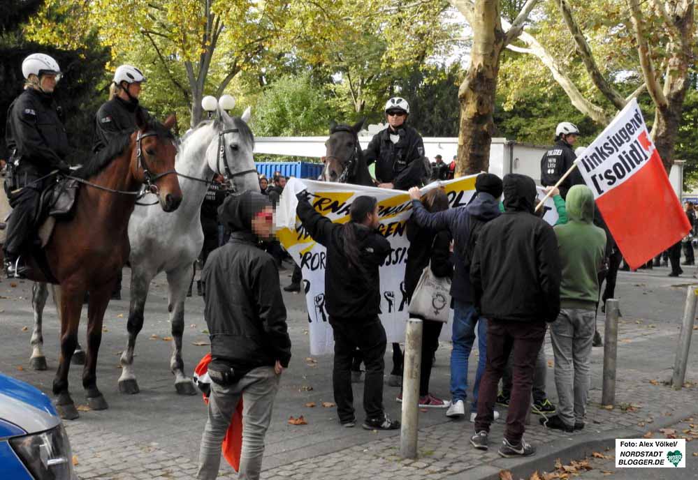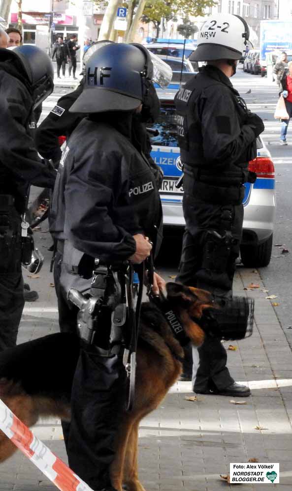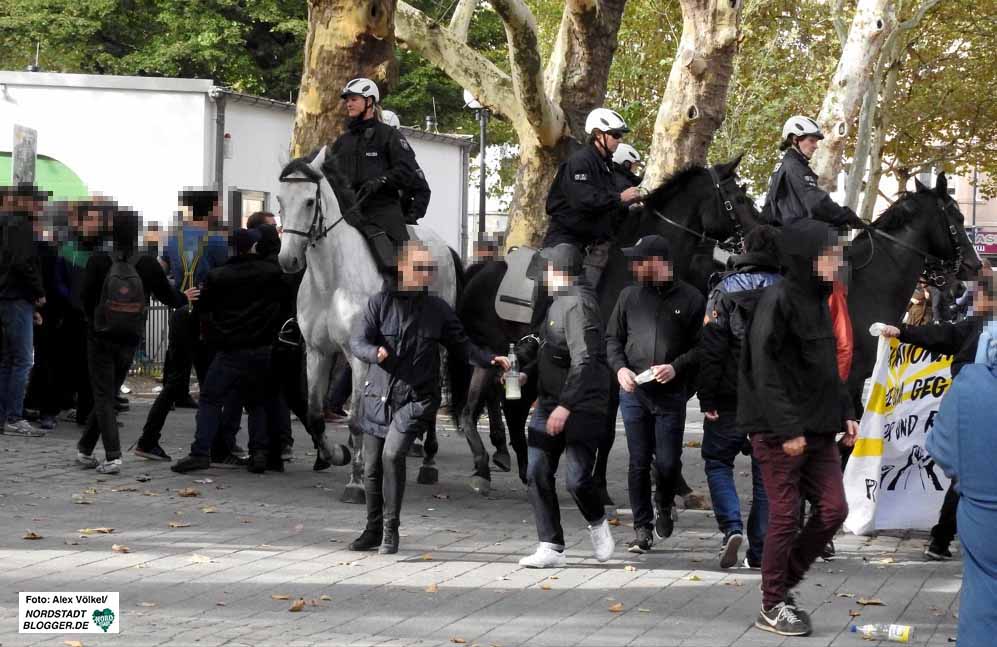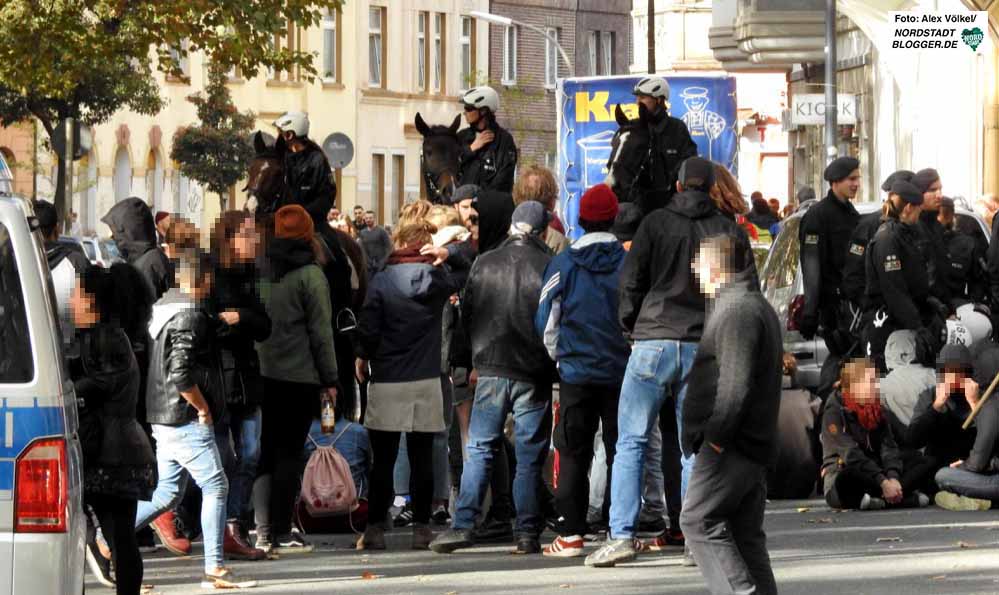 Denn es gab so viel Protest und Störmanöver wie schon lange nicht mehr in der Nordstadt. Daher sah die Polizei sich genötigt, ein großes Repertoire von Einsatzkräften einzusetzen, darunter auch die Reiter- und Hundestaffel.
