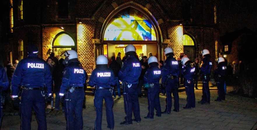 Zwei Aktivisten erhielten wegen wüsten Beleidigungen u.a. gegen die Sozialdezernentin Hausverbot. Sie widersetzten sich vor der Tür der Personalienfeststellung und verletzten einen Polizisten mit einer abgebrochenen Bierflasche schwer im Gesicht.