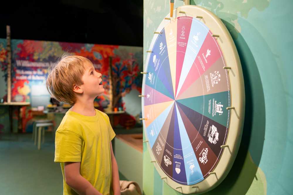 In den Erlebnisräumen können Kinder zwischen drei und zwölf Jahren gemeinsam mit ihren Familien die Welt unter der Erde erkunden. Sie folgen Pflanzenwurzeln in die Tiefe, begegnen Bodenlebewesen wie Pilzen, Bakterien und Würmern und lernen verschiedene Bodenarten kennen. Dabei entdecken sie auch Bodenschätze, bepflanzen einen Acker, ernten und verarbeiten die Lebensmittel anschließend in einer Spielküche.
