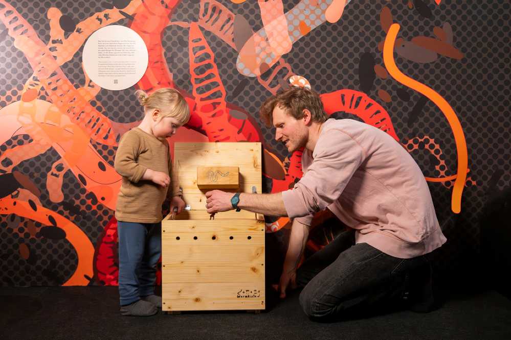 Im Pilz-Raum können bereits die Jüngsten im U3-Bereich erste Erfahrungen sammeln und an einer interaktiven Knüpfwand die Vielfalt des Bodens kennenlernen. Der Wurm-Raum setzt auf Bewegung und Aktivität: Hier wird balanciert, gekrabbelt oder sogar in ein Wurmkostüm geschlüpft.