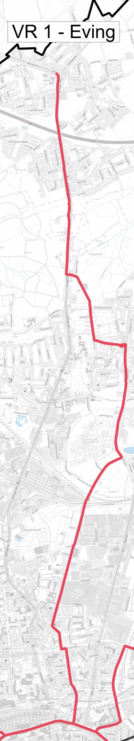 Die Veloroute 1 ist Teil eines stadtweiten Netzes, das künftig aus neun Velorouten mit einer Gesamtlänge von rund 82 Kilometern bestehen soll. Diese Routen verbinden den Radwall in der Innenstadt mit den Stadtbezirken Eving, Scharnhorst, Brackel, Aplerbeck, Hörde, Hörde-West, Hombruch, Lütgendortmund und Mengede. Mehrere Abschnitte sind bereits fertiggestellt, weitere sollen schrittweise folgen.