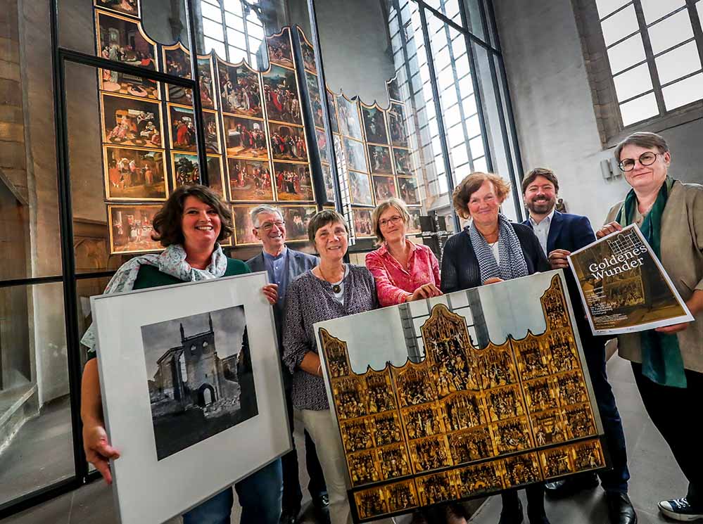 Engagierten und mutigen Männern und Frauen ist es zu verdanken, dass der Altar 1943 gerettet wurde, kurz bevor Bombenangriffe die Kirche und die gesamte Innenstadt in Schutt und Asche legten. Die Geschichte der Rettung und der Rückkehr des „Goldenen Wunders“ wird jetzt neu erzählt und im Rahmen einer Vortragsreihe allen Interessierten zugänglich gemacht.