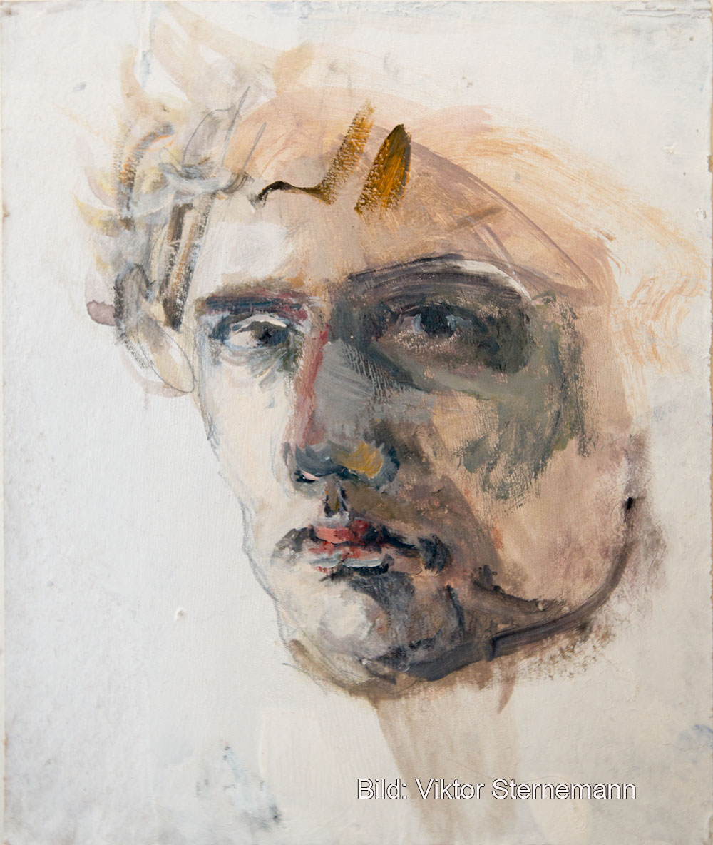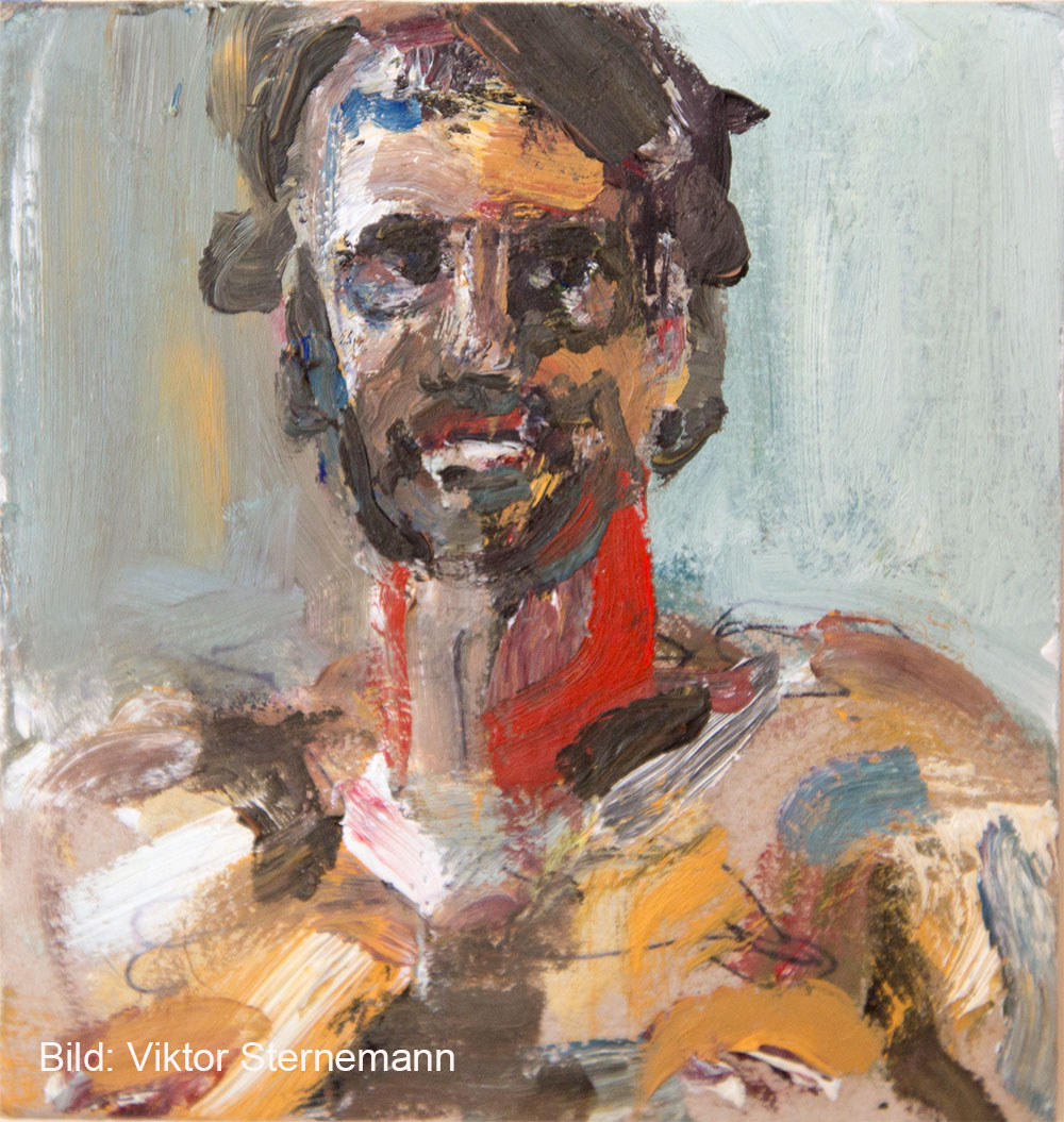 Diese Bilder hängen jetzt an einer Leine im Ausstellungsraum. Wer darüber hinaus selbst einmal probieren möchte, wie man Gesichter malt, kann an einem Workshop teilnehmen, der für den 23. Juli geplant ist. Niemand muss sich sorgen, nicht zu verstehen, was der Künstler einem erklärt: Viktor Sternemann will Kunst- und Mathelehrer werden, weiß also, wie man Unterricht gibt.