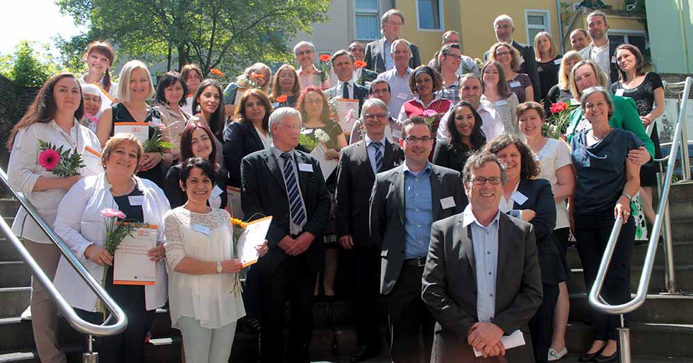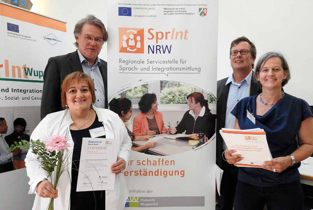 Teilnehmerinnen und Teilnehmer aus fast 20 Herkunftsländern haben ihre Ausbildung abgeschlossen und können nun – wenn sie eine Stelle finden – die Arbeit als Sprach- und Integrationsmittler aufnehmen. Möglich macht dies das Projekt Sprint NRW, welches arbeitslosen Menschen mit Migrationsvorgeschichte durch die Qualifizierung eine Perspektive auf den 1. Arbeitsmarkt gibt.