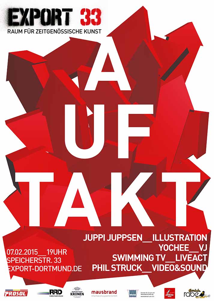 Zum Auftakt am 7. Februar gibt es bunte Illustrationen von Juppi Juppsen (Düsseldorf und Stuttgart) zu sehen, Arbeiten von Visual-Jockey Jochee aus Münster, Swimming TV wird zur Premiere einen Liveact bieten und Phil Struck aus Hamburg ist mit Video & Sound vertreten.