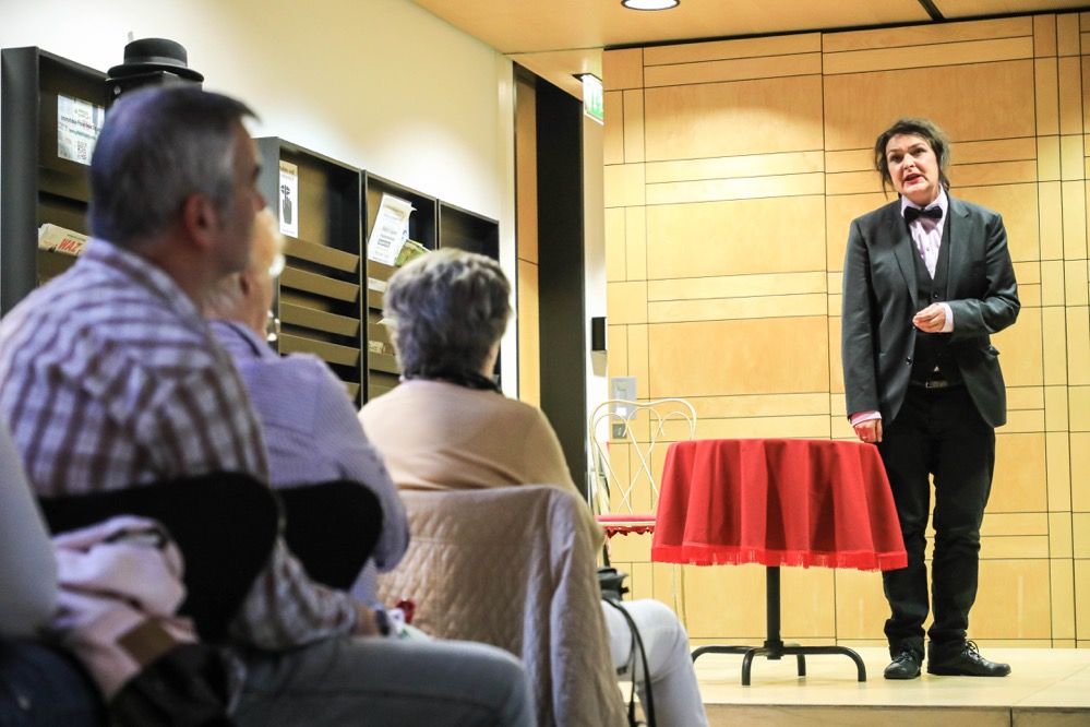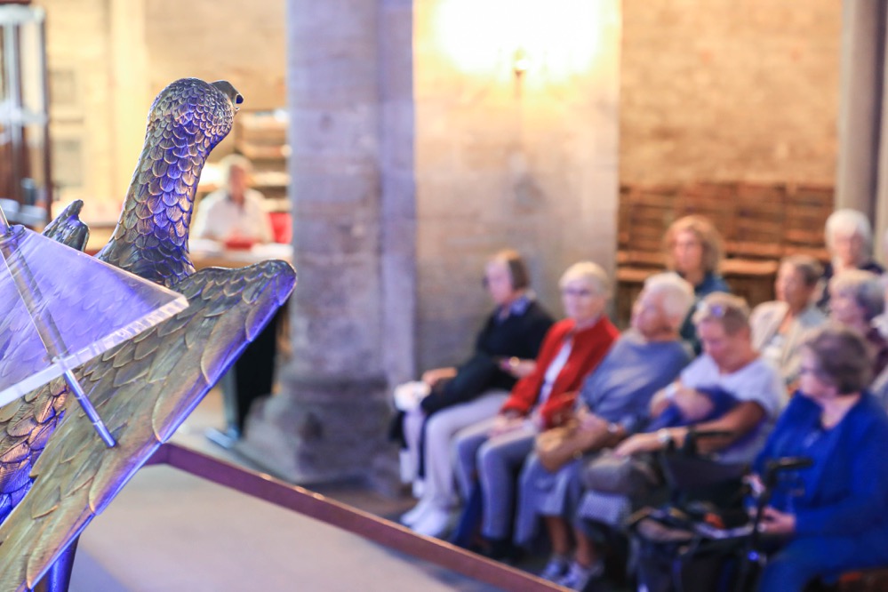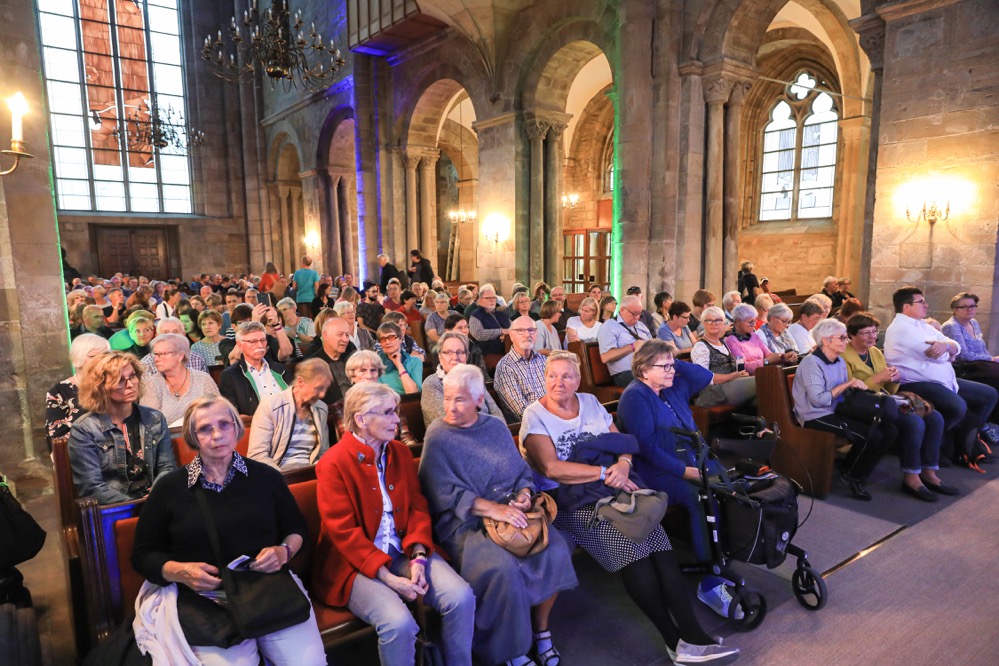 Nur bei „Verleih uns Frieden“ von Heinrich Schütz hätte man sich mehr Elan gewünscht. Zwar ist der Schwerpunkt der fünf SängerInnen die Werke des Frühbarocks und der Renaissance (in der Museumsnacht waren Hans Leo Hasslers „Tanzen und Springen“ sowie Madrigale von Monteverdi zu hören), aber auch ein zeitgenössisches Lied war zu hören: Paul Heller mit „wir glauben all an einen Gott.“