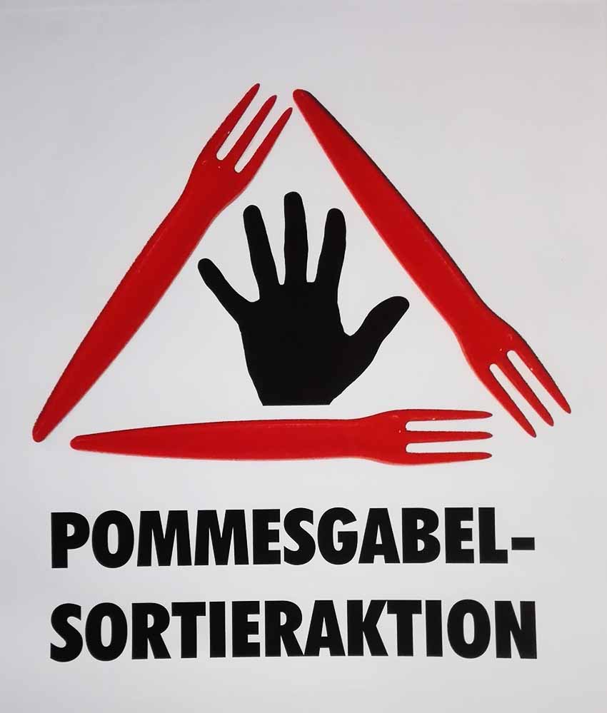 Eine besondere Aktion hatte sich der Künstler Matthias Schamp ausgedacht: die Pommesgabel-Sortier-Aktion. Gerade weil dieses Ding so profan ist, verdient es, beachtet zu werden.