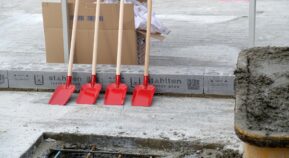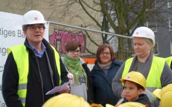 Frau Tanja Miss, die Leiterin des Familienzentrums Paulus, ist froh, dass der Bau nun kontinuierlich vonstatten geht. „Wir sehnen den Neubau wirklich herbei. Im Provisorium, wo wir jetzt die Kinder untergebracht haben, gibt es kein Außengelände.“