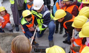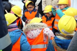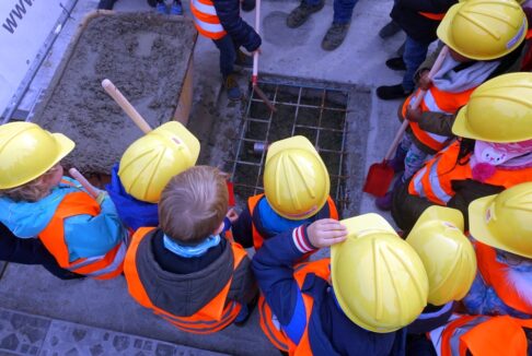 Das ist auch der Grund, weshalb die Kinder von Anfang an in die Veränderungen auf der Baustelle mit einbezogen wurden: in der Einrichtung gibt es ein Baustellenfenster; regelmäßig dürfen die Kids das Geschehen von dort aus beobachten.
