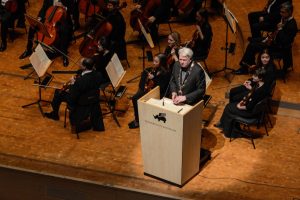 Die traditionelle Neujahrsansprache des Oberbürgermeisters begann mit einem Lob für die hervorragende Akustik in der Dortmunder Philharmonie. Dabei hob er hervor, welch exzellente Botschafter die Dortmunder Philharmoniker seien. Nach seinem kurzweiligen, launigen Schlenker, begleitet von erheitertem Lachen, wurde Sierau wieder ernster. Der Oberbürgermeister hob in seiner Rede besonders den Gedanken des Gemeinwohles und das Engagement von DortmunderInnen und der Stadt, für ein friedliches Zusammenleben in der multikulturellen Stadt in schwierigen, von Populismus zerrissenen Zeiten hervor.